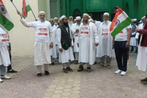 धर्मिक ध्वज के साथ साथ तिरंगा थामे -उत्साह और उमंग के साथ निकला दाऊदी बोहरा समाज ने मिलादुन्नबी का जुलुस